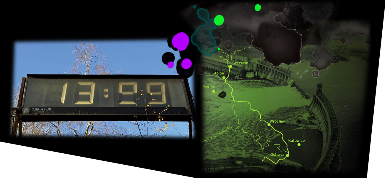 Der Ausstellungsrundgang startet im Schloss Altranft, einem Herrenhaus inmitten eines Landschaftsparks aus dem 19. Jahrhundert. Die besondere Topografie des Oderbruchs zeigt Künstlerin Antje Scholz mit ihrem Gespinst, das die Wasserführung der Oder sowie das komplexe Grabensystem darstellt. Mit einer großen Murmelbahn lassen sich die Fließwege des Wassers spielerisch erkunden. In Fotografien von Menschen aus dem Oderbruch, Filmen und Audiostationen steht die Landschaft selbst im Mittelpunkt.